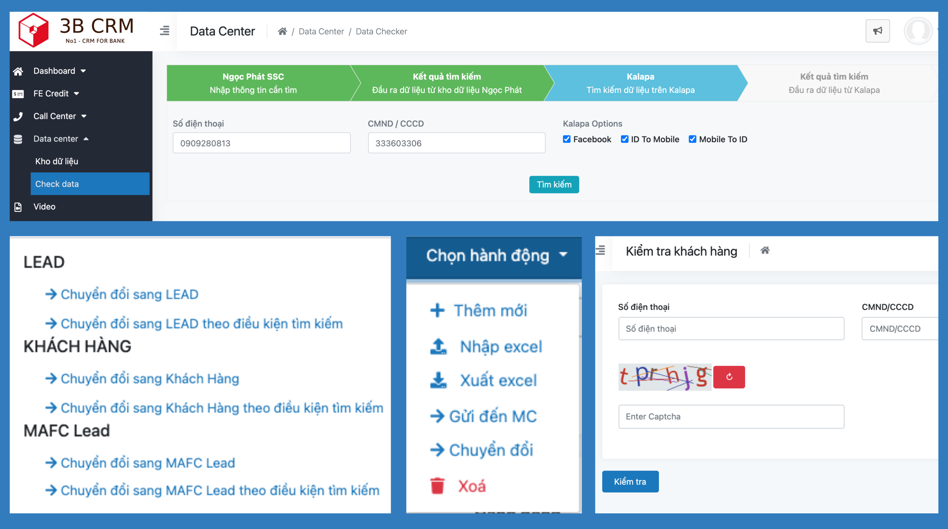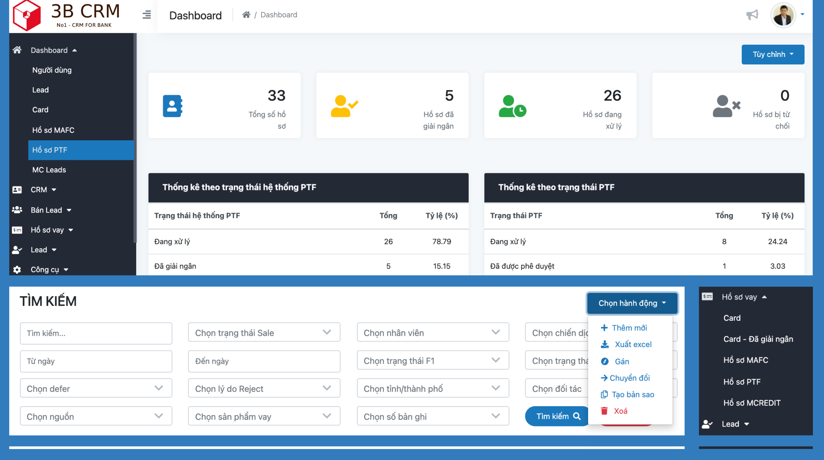 - Phát triển dự án / sản phẩm tài chính bất kỳ (Giới hạn các sản phẩm mà 3B CRM hiện đang đấu nối.)